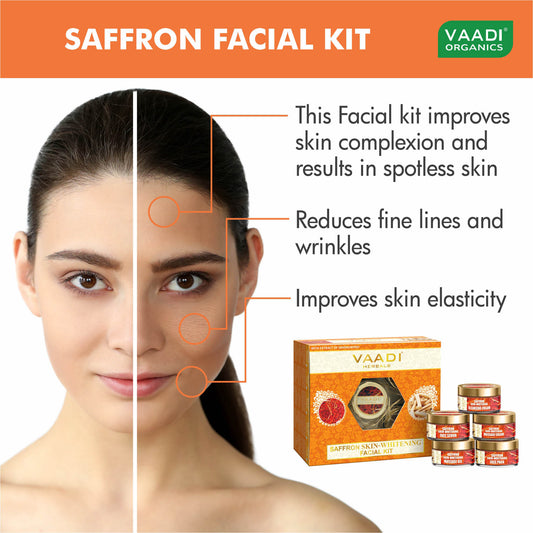 Skin Whitening Organic Saffron Facial Kit with Sandalwood oil, Orange Peel, Lemongrass & Shea Butter - Lightens Skin Tone (270 gms/9.6 oz)