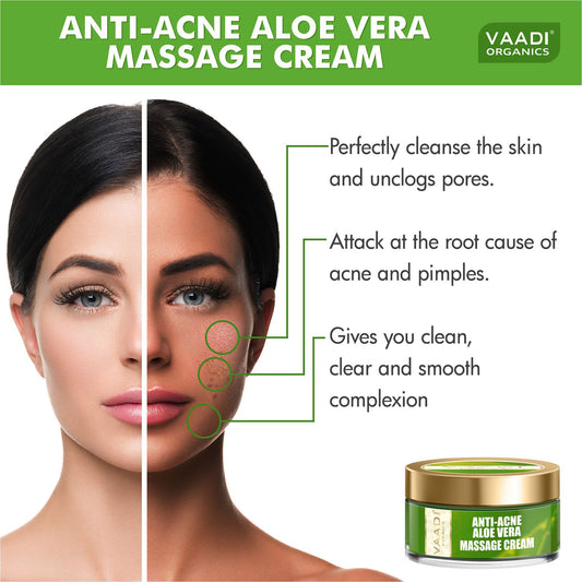 Anti Acne Organic Aloe Vera Massage Cream - Removes Skin Impurities - Keeps Skin Soft (50 gms/ 2 oz)