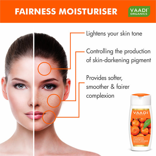 Organic Fairness Moisturiser with Mandarin Extract - Vitamin C Rich - Lightens Skin Tone - Controls Pigmentation (110 ml/ 4 fl oz)