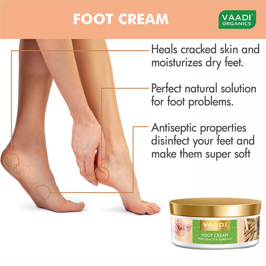 Organic Foot Cream with Clove & Sandalwood Oil - Softens Dry & Cracked Feet - Deep Moisturises (150 gms / 5.3 oz)
