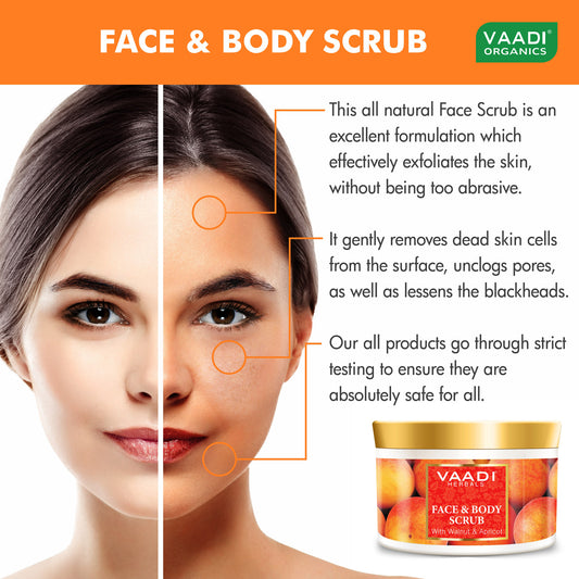 Organic Face & Body Scrub with Walnut & Apricot - Exfoliates & Unclogs Pores - Keeps Skin Youthful ( 500 gms / 17.7 oz)