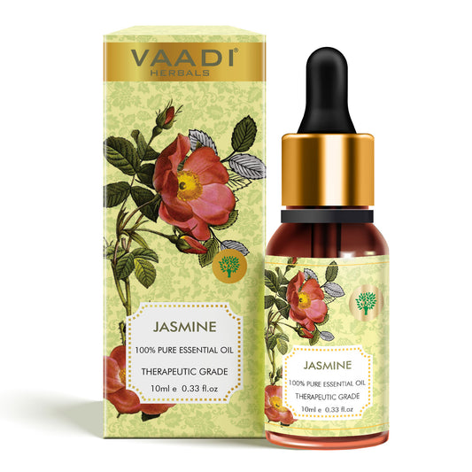 Organic Jasmine Essential Oil - Nourishes Dry & Damaged Hair, Improves Sleep, Uplifts Mood, Reduces Acne & Blemishes (10 ml/ 0.33 oz)