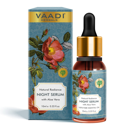 Organic Natural Radiance Night Serum with Aloe Vera - Reduces Dark Spots & patches, Repairs Damaged & Uneven Skin (10 ml/ 0.33 oz)