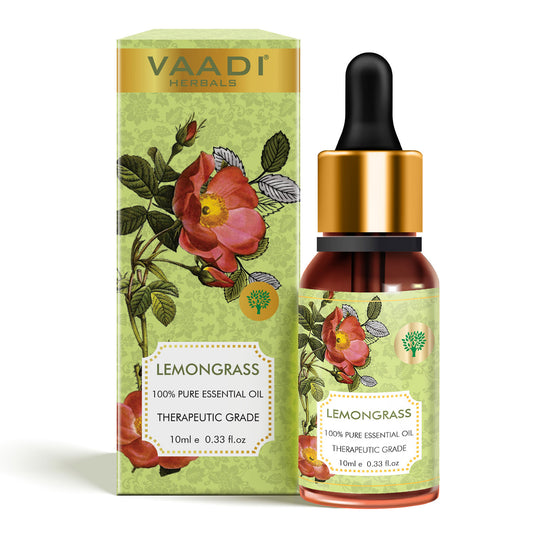 Organic Lemongrass Essential Oil - Reduces Stress & Depression, Prevents Hairfall, Prevents Skin Ageing - 100% Pure Therapeutic Grade (10 ml/ 0.33 oz)