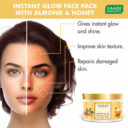 Organic InstaGlow Face Pack with Almond & Honey - Lightens Pigmentation - Gives Instant Glow (600 gms /21.2 oz)