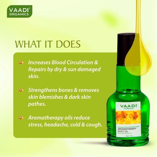 Organic Lemongrass Oil with Lily Extract - Aromatherapy - Strengthens Bones - Relieves Headache- Heals Skin (50 ml/1.7 fl oz)