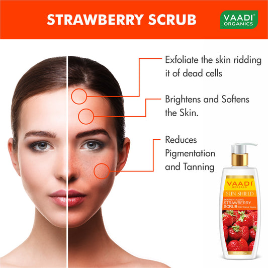 Organic Strawberry Scrub Moisturising Lotion with Walnut Grains- Lightens Skin Tone - Reduces Pigmentation - Removes Dead Cells (350 ml/ 12 fl oz)