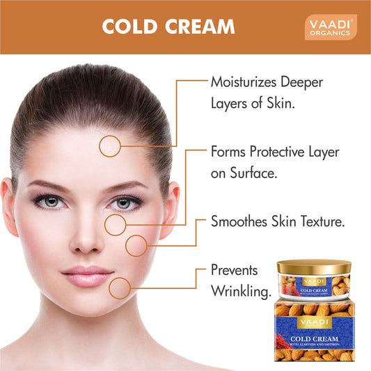 Organic Cold Cream with Almond Oil, Aloe Vera & Saffron - Protects & Moisturises Skin - Reduces Wrinkles (150 gms / 5.3 oz)