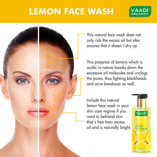 Skin Hydrating Organic Lemon Face Wash with Jojoba Beads - Removes Excess Oil - Prevents Acne ( 2 x 250 ml/8.45 fl oz)