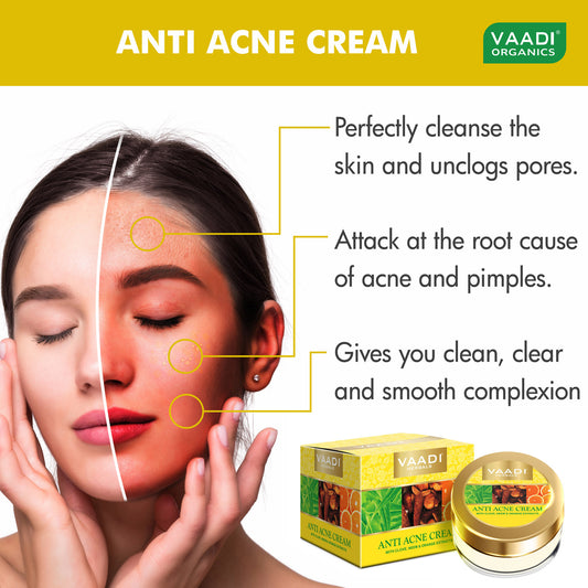 Anti Acne Organic Cream with Clove Oil & Neem Extract - Anti Bacterial Therapy - Controls Excess Oil - Prevents Acne (3 x 30 gms / 1.1 oz)