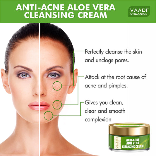 Anti Acne Organic Aloe Vera Cleansing Cream - Removes Skin Impurities - Keeps Skin Soft (50 gms/ 2 oz)