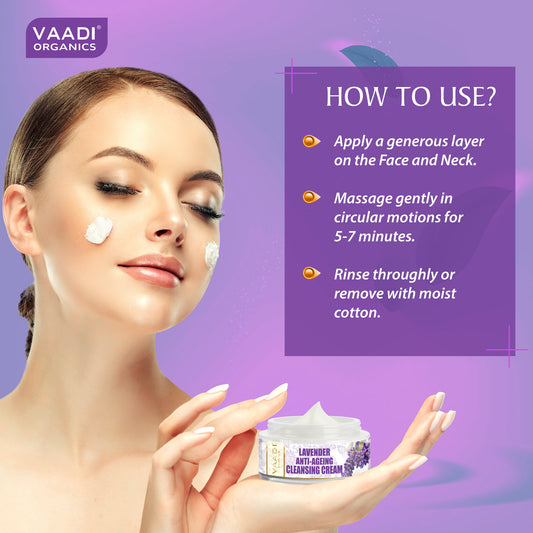 Anti Ageing Organic Lavender Cleansing Cream with Rosemary Extract - Boosts Cellular Renewal - Keeps Skin Firm (50 gms / 2 oz)