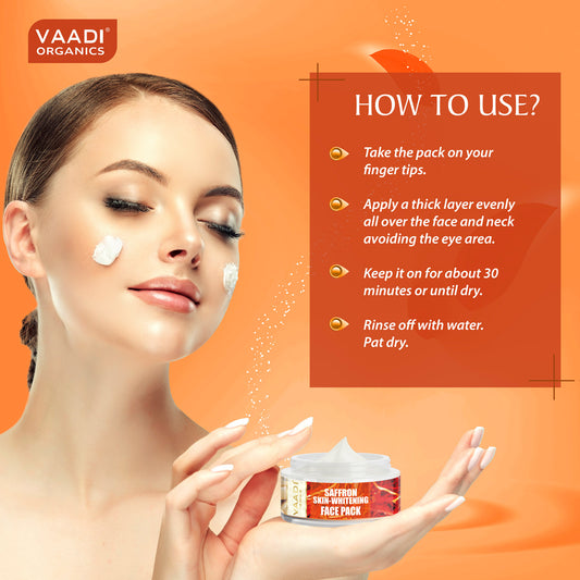 Skin Whitening Organic Saffron Face Pack - Lightens Skin Tone - Reduces Marks and Pigmentation (70 gms/2.5 oz)