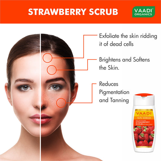 Organic Strawberry Scrub Moisturising Lotion with Walnut Grains- Lightens Skin Tone - Reduces Pigmentation - Removes Dead Cells (3 x 110 ml/ 4 fl oz)