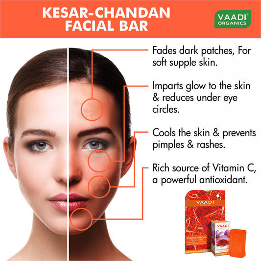 Organic Saffron Sandal Facial Bar with Orange Peel Extract - Lightens Marks- Makes Skin Flawless (4 x 25 gms/0.9 oz)