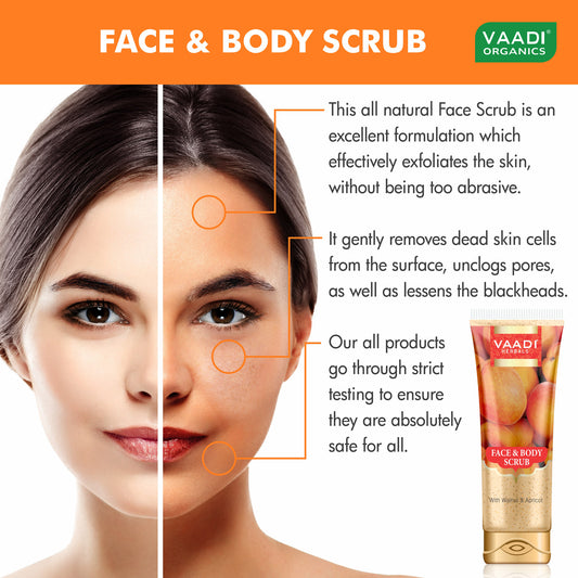 Organic Face & Body Scrub with Walnut & Apricot - Exfoliates & Unclogs Pores - Keeps Skin Youthful (110 gms / 4 oz)