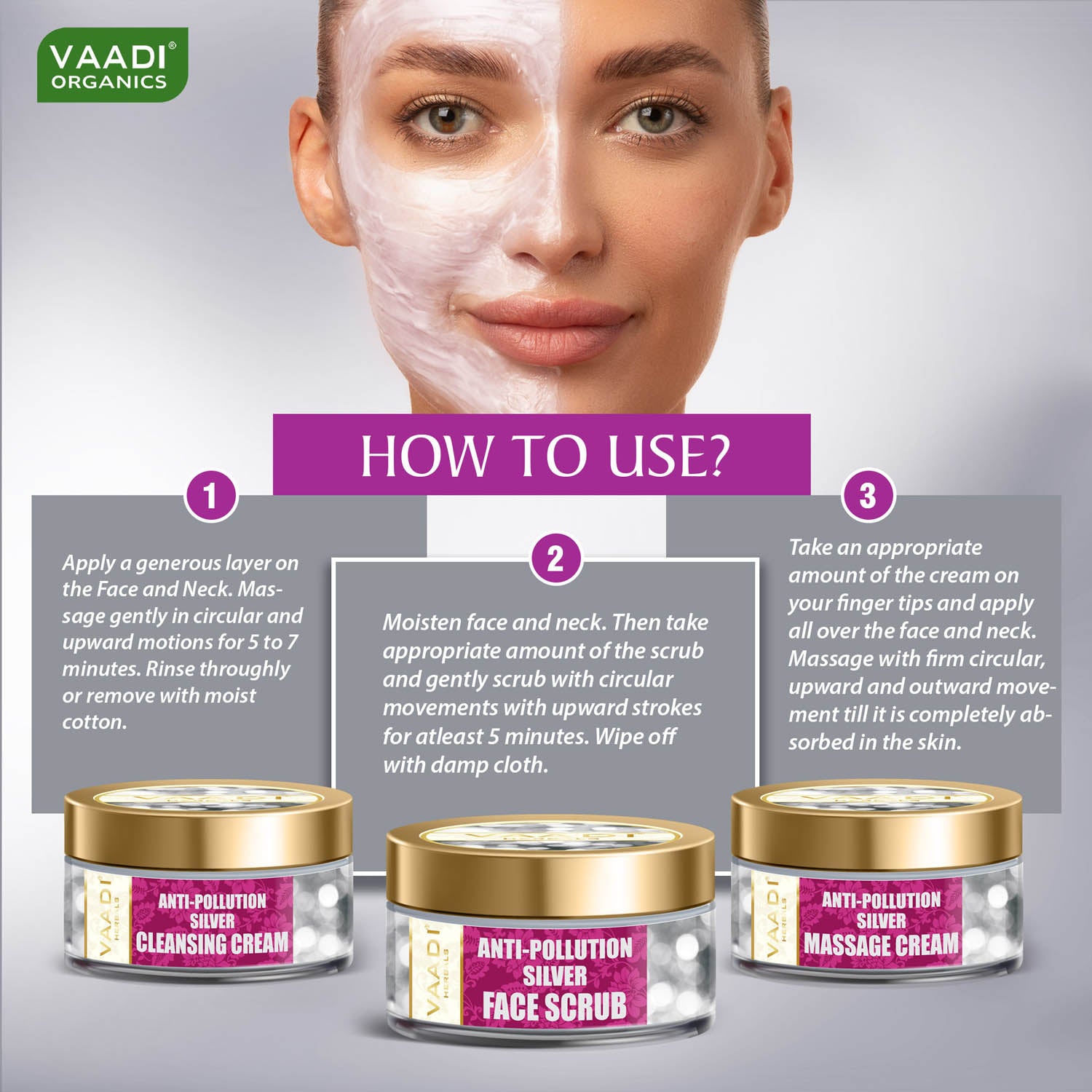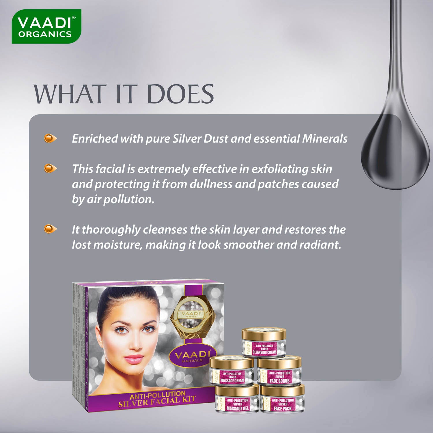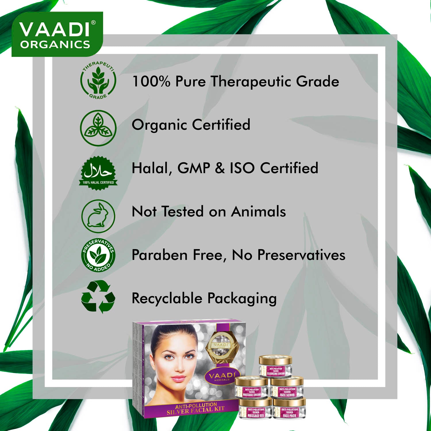 Anti Pollution Organic Silver Facial Kit with Pure Silver Dust, Rosemary and Lavender Oil, Cleanses and Moisturises Skin (270 gms/9.6 oz)