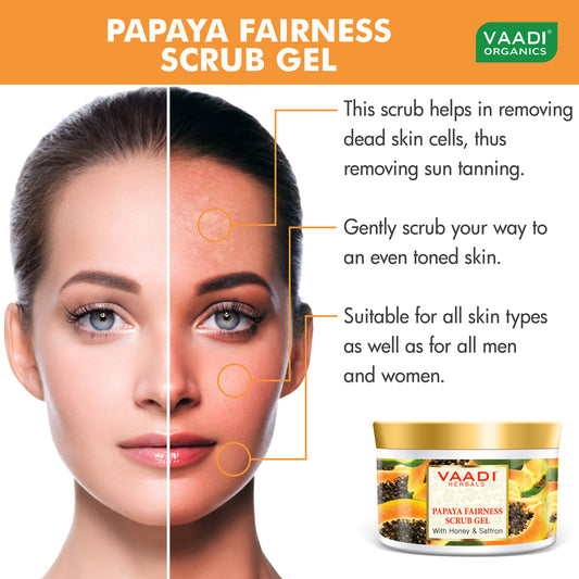 Organic Papaya Fairness Scrub Gel with Honey & Saffron - Lightens Tan - Smoothens Skin Texture - Makes Skin Flawless (110 gms / 4 oz) (Buy 1 Get 1 Free)
