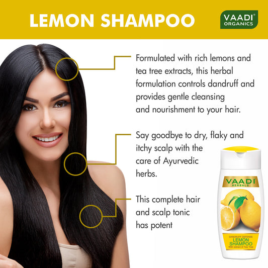 Dandruff Defense Organic Lemon Shampoo with Tea Tree Extract - Disinfects Scalp - Prevents Hairfall (110 m/ 4 fl oz)