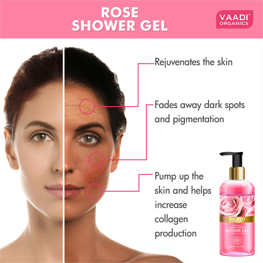 Enchanting Organic Rose & Mogra Shower Gel - Skin Brightening Therapy - Lightens Spots & Patches (300 ml / 10.2 fl oz)