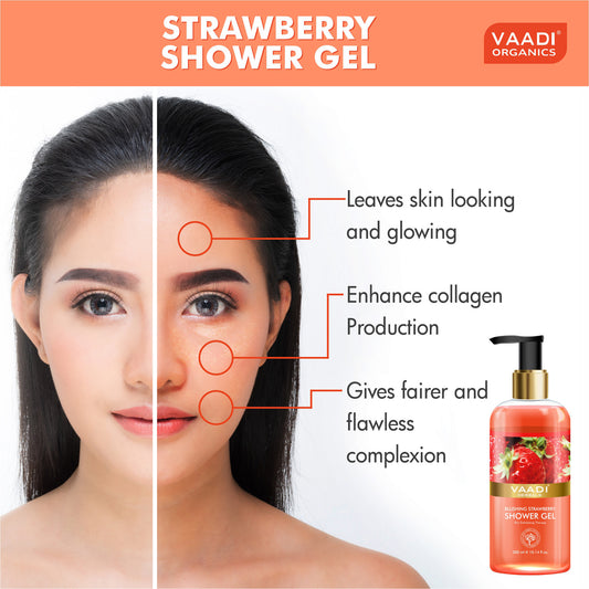 Blushing Organic Strawberry Shower Gel - Skin Firming Therapy - Enhances Collagen (300 ml / 10.2 fl oz)