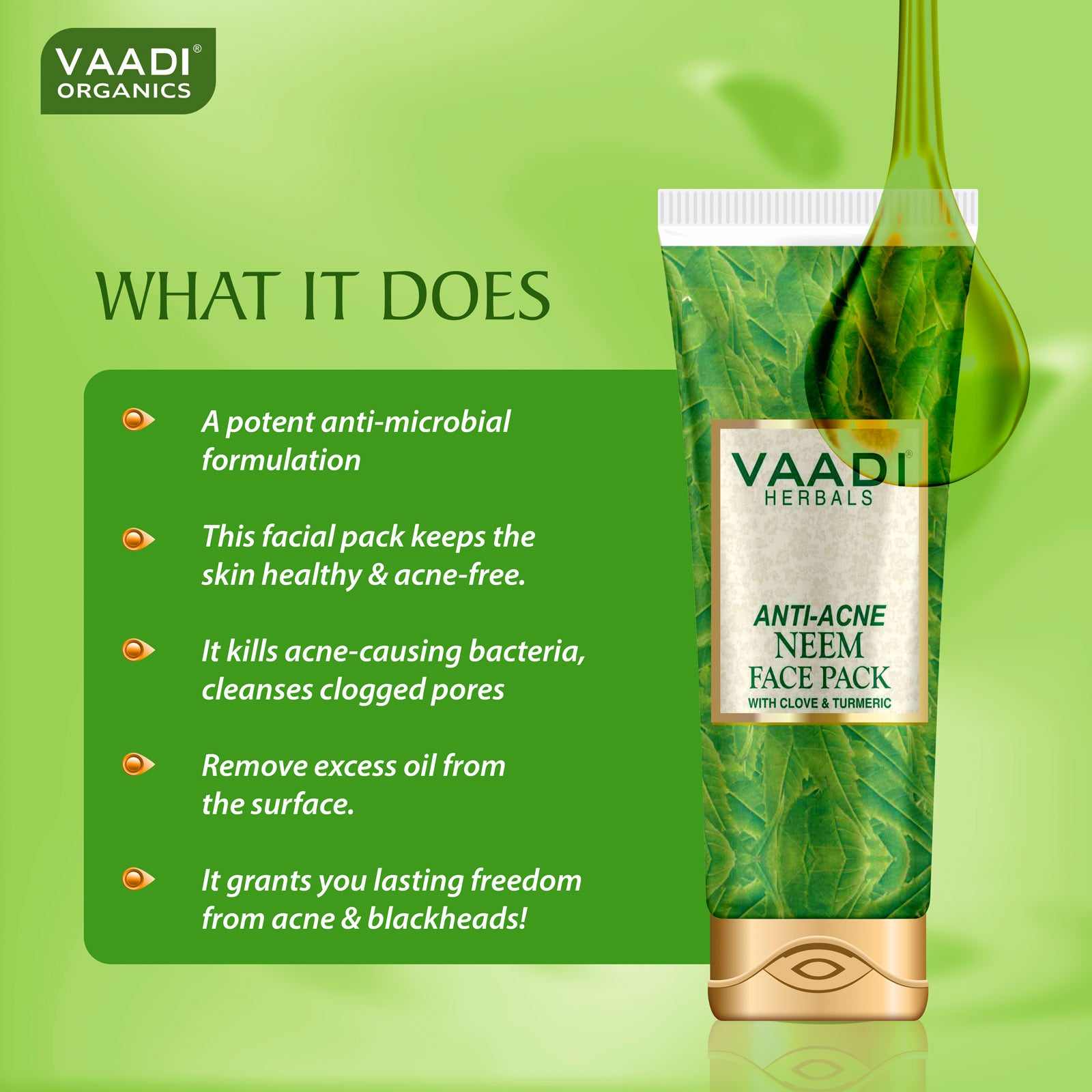 Organic Neem Face Pack with Clove & Turmeric - Removes Acne and Pigmentation Marks - Clears Impurities and Soothes Skin (120 gms / 4.3 oz)