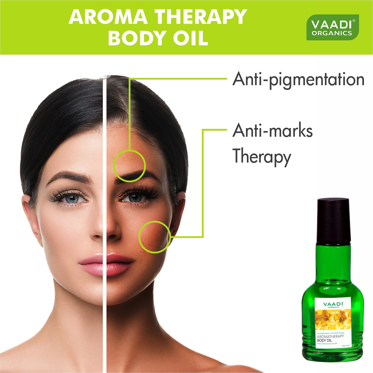This body oil contains lemon grass & olive oil, also enriched with vitamin E. It is very good skin softener & removes skin pigmentation marks.