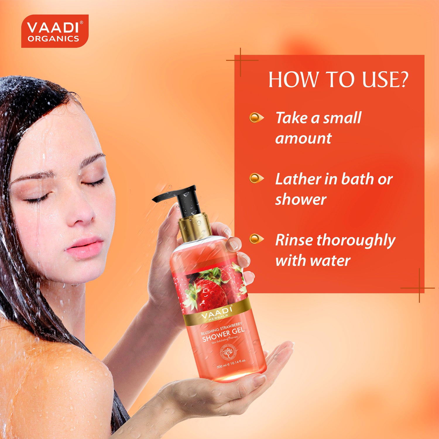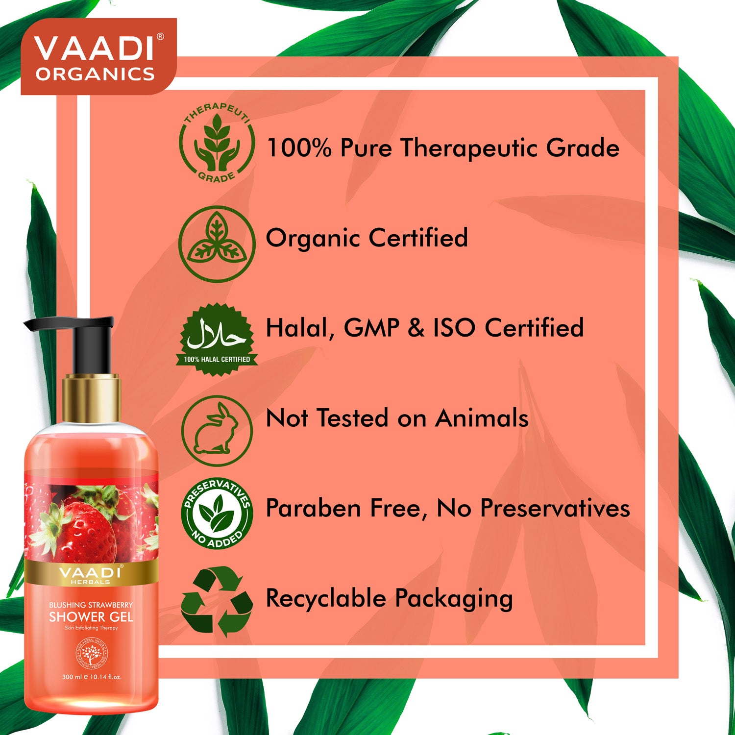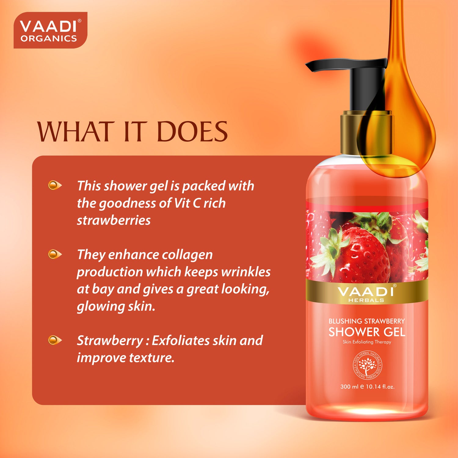 Blushing Organic Strawberry Shower Gel - Skin Firming Therapy - Enhances Collagen (300 ml / 10.2 fl oz)