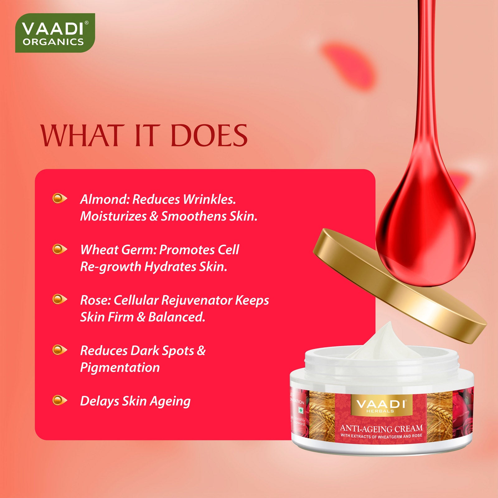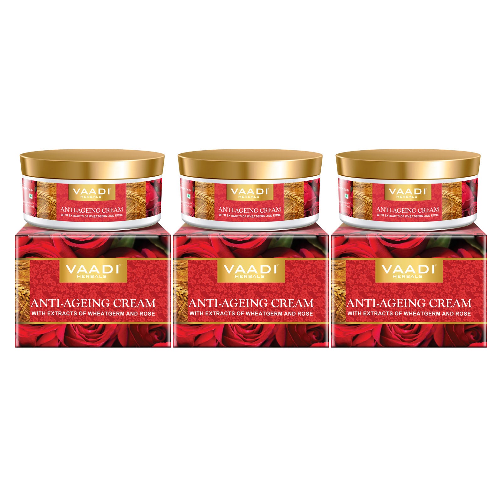 Organic Anti Ageing Cream with Almond, Wheatgerm - Boosts Collagen & Delays Wrinkles - Keeps Skin Soft & Youthful (3 x 150 gms / 5.3 oz)