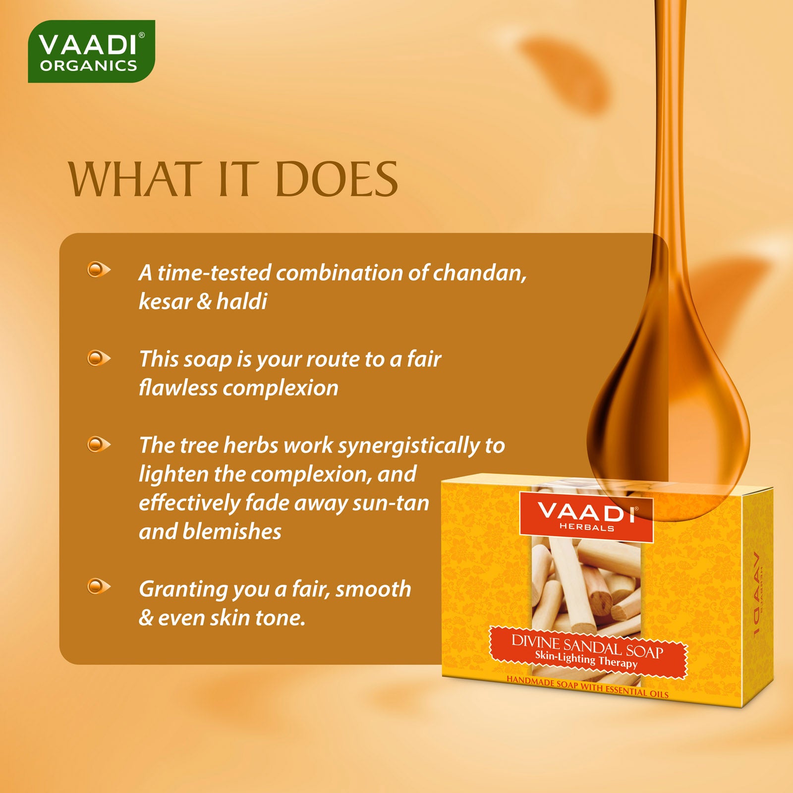 Organic Divine Sandal Soap with Saffron & Turmeric - Skin Lightening Therapy - Lightens Tan & Blemishes (3 x 75 gms / 2.7 oz)