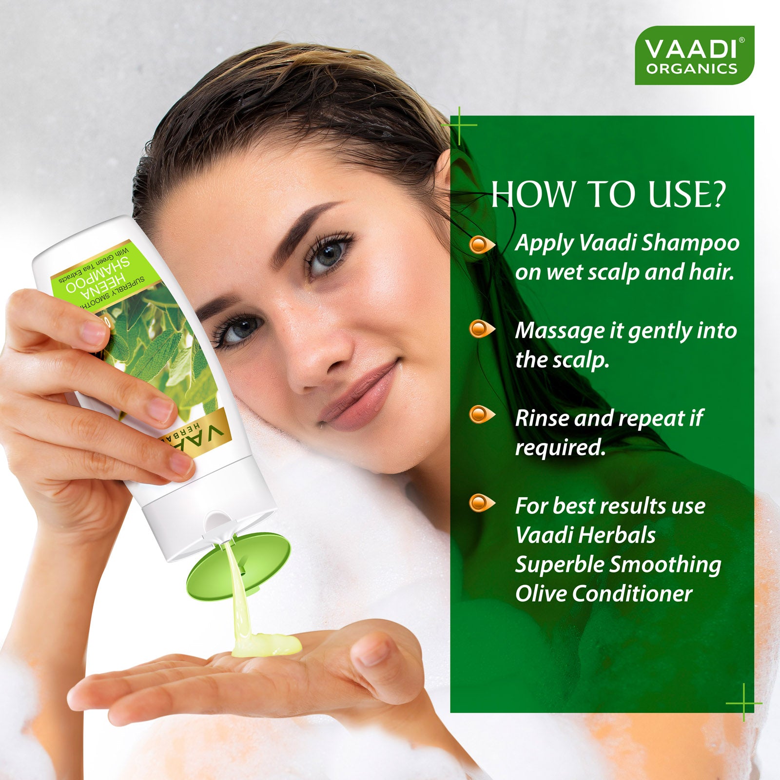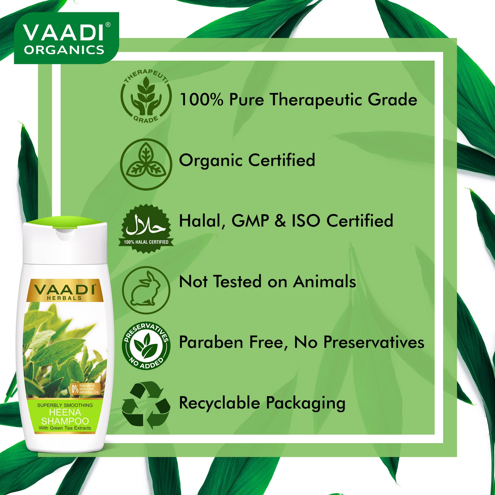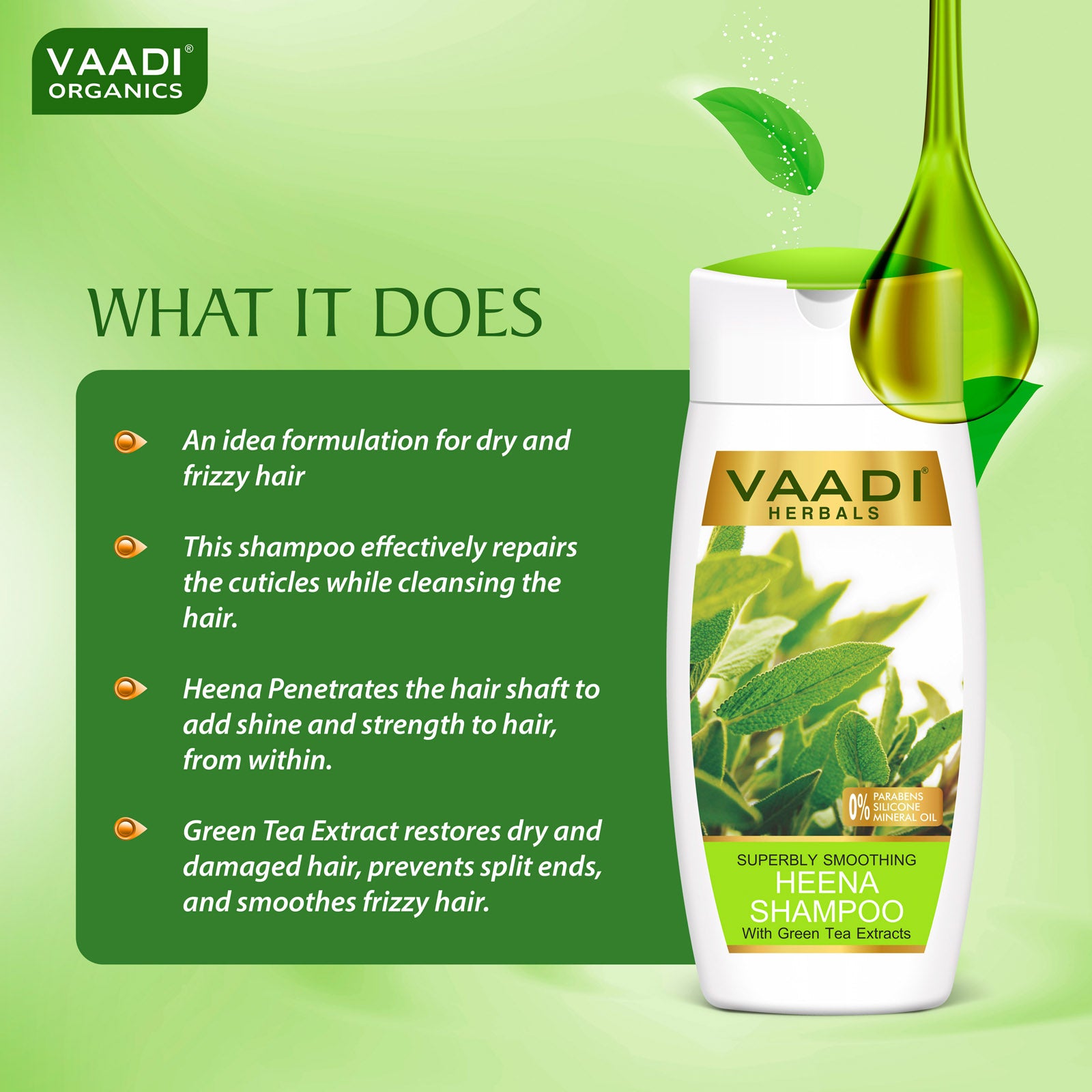 Superbly Smoothing Organic Heena Shampoo with Green Tea Extract - Controls Dry Frizzy Hair - Strengthens Hair (110 ml/4 fl oz)